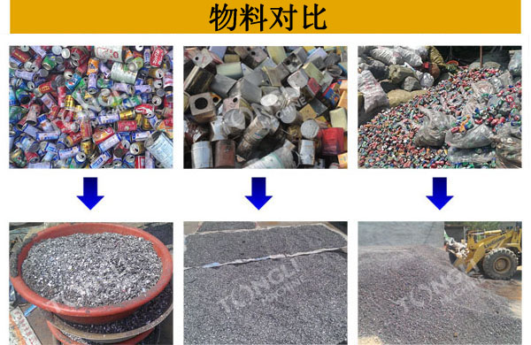 適用物料:油漆桶,機(jī)油桶,水箱,柴油桶,汽油桶,易拉罐,鐵皮桶,廢舊鋼鐵,彩鋼瓦,鐵皮,輕薄料,金屬壓塊,自行車,電瓶車,廢舊家電等等,只要是滿足入料尺寸要求的廢金屬料,它都可以處理。